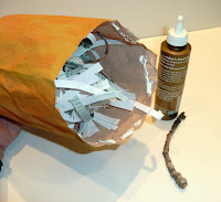 Make a few, they look great on the table or the mantle. I tried making one out of a large paper bag but the paint did not take as well on the heavier paper. I guess I could try acrylic, but I'm thinking I need a pretty big branch for the stem.