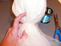 I wanted mine to have a wispy feeling so I took a length of tulle, larger than the original white material, and covered the head.