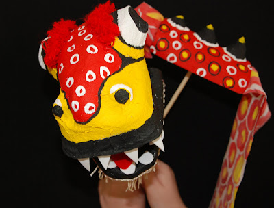 So I thought the Grade 3's should make a Dragon Puppet for Chinese New Year. They are learning about traditions and celebrations so this seemed to fit.