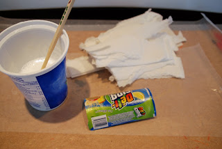 - recycled yogurt container to hold glue mixture