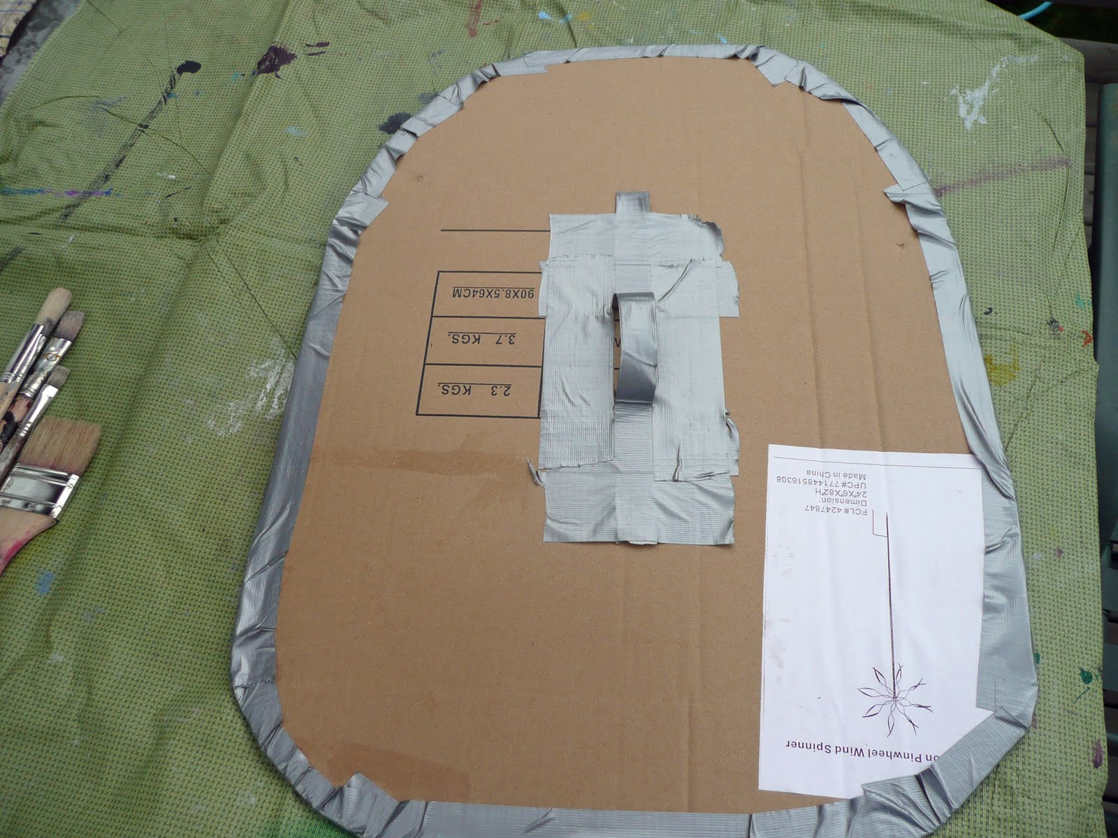 For the shields I cut a shape out of some cardboard edged it with duct tape and added a handle at the back.