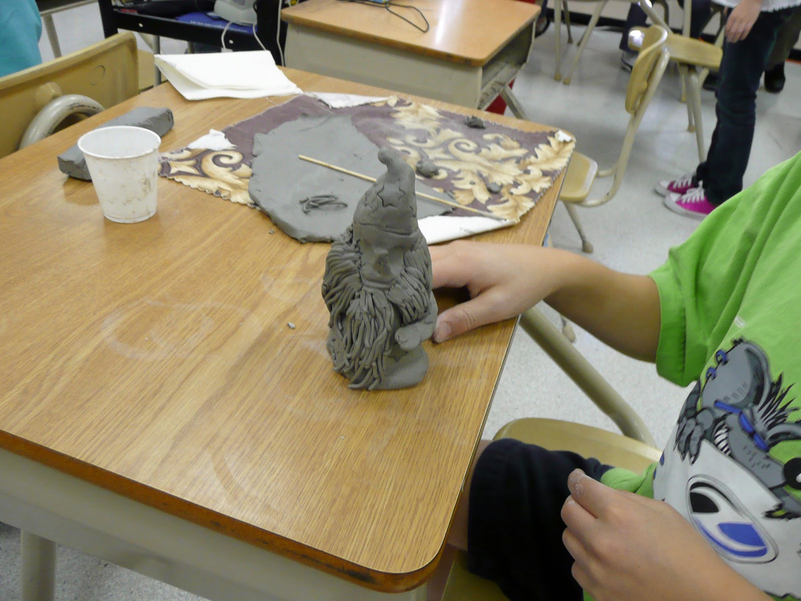 The kids then pinched out a face, scored in a division line between the face and hat, and added hair.