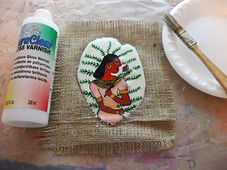 Lay out your burlap rectangles onto wax paper or newspaper. I use an art board as my base so I can move them around.
