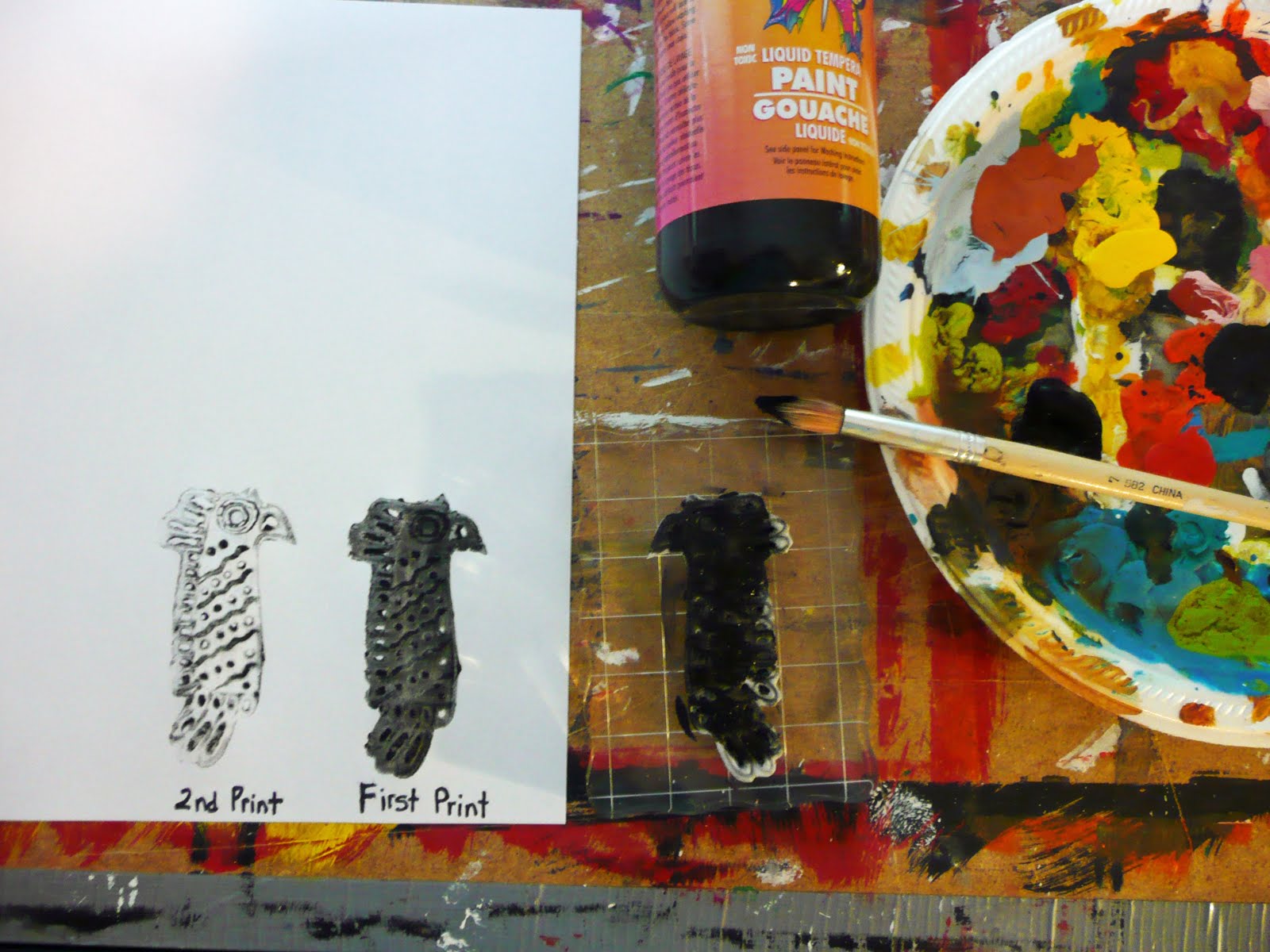 Now paint your stamp with some liquid tempera and then turn over and press onto paper.