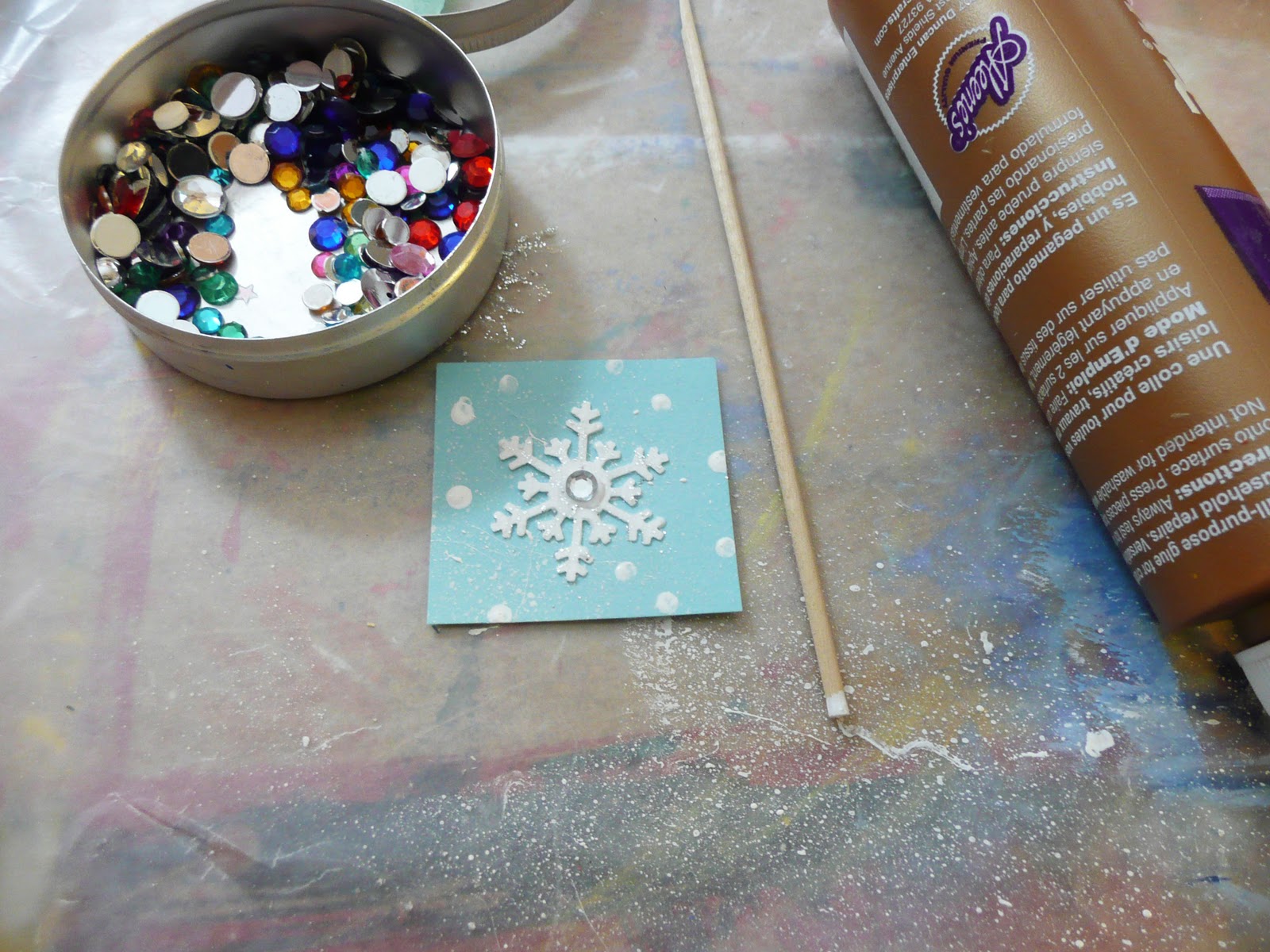 For the mitten square, take the silver painted Inchie. Add some glitter glue to the square for more sparkle.