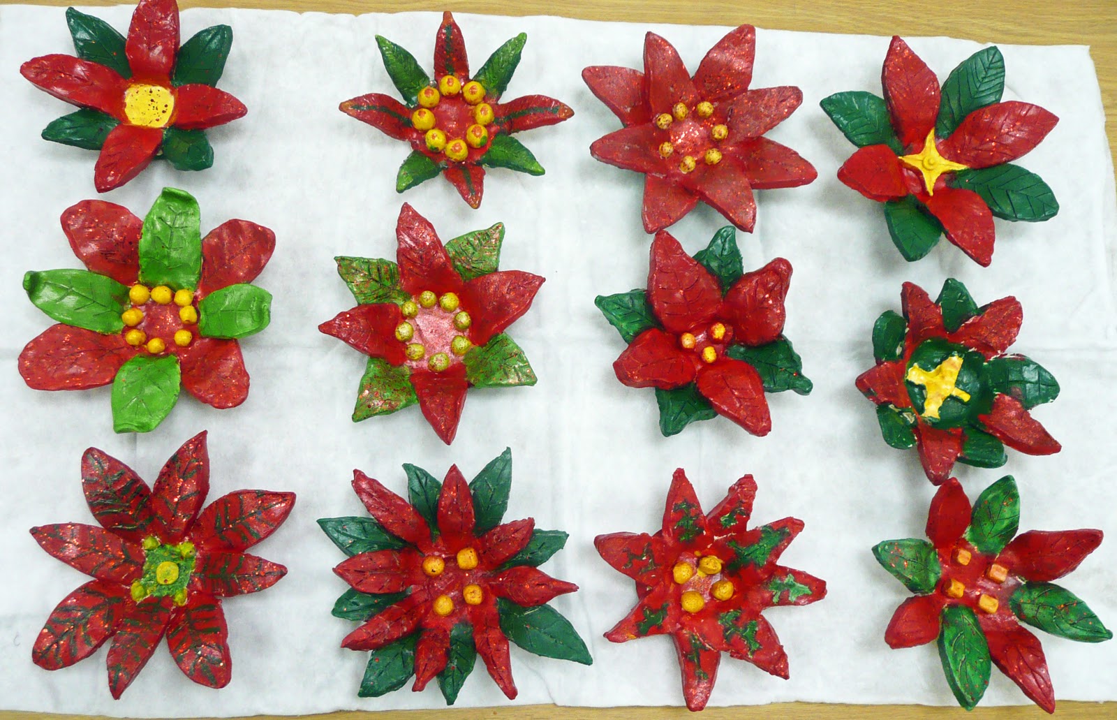 Grade 6 ended up painting their Poinsettias with acrylic instead of glazing and I think they turned out great!