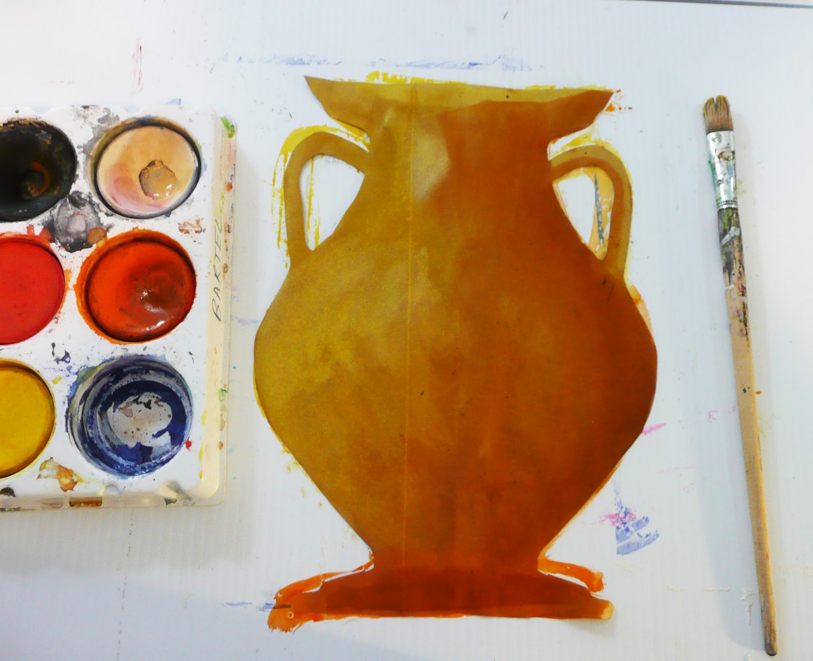 - disk tempera paint in yellow, orange, brown and black