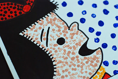 Let the dots dry and then using a medium sharpie put in those bold outlines.