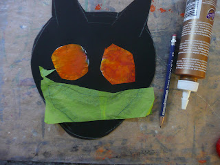 We are going to fill in those eyes, nose, and mouth with either tissue, vellum, painted coffee filters, or even streamers.