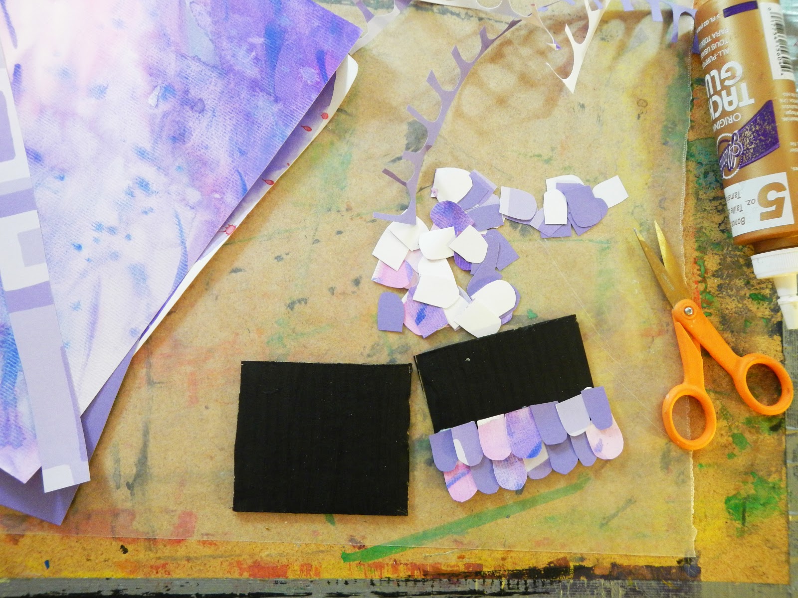 Take some coloured paper. Here I'm using some extra painted paper from my stash and some coloured cardstock.