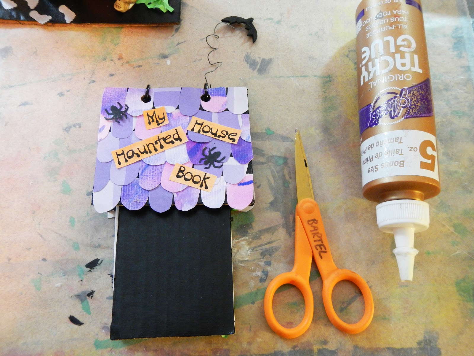 Take a piece of wire and wrap around a pencil. Slide it off. I cut a little bat from some craft foam but you could also use cardstock.
