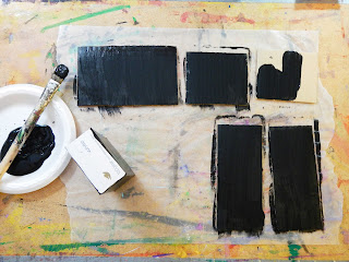 When the paint is dry you can paint the backs of your covers and roof sections or you glue some nice coordinating paper.