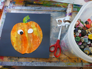 When your painted papers are dry turn over and sketch out your pumpkin shape.