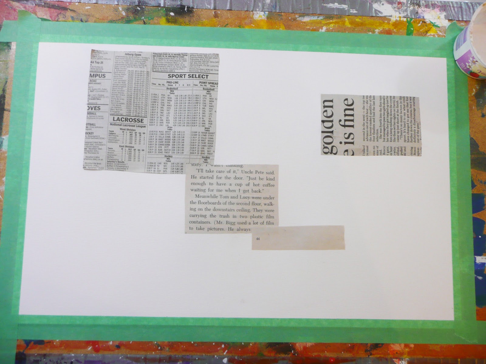 - scraps of newspaper and/or book pages cut into squares and rectangles