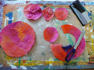 Streamer and paper towel poppies must be painted after making up the flowers. The streamer and paper towels are a bit delicate to paint on their own. Make sure you dab when applying the paint as they are still quite fragile and you don't want holes.
