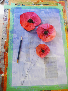 We haven't added the poppies to our background yet as the the papers weren't dry enough. Can't wait to see the finished work on Monday!