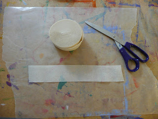 Take your streamer and cut off a strip about 8 inches or so. For a class, you will want to pre -cut your streamers.