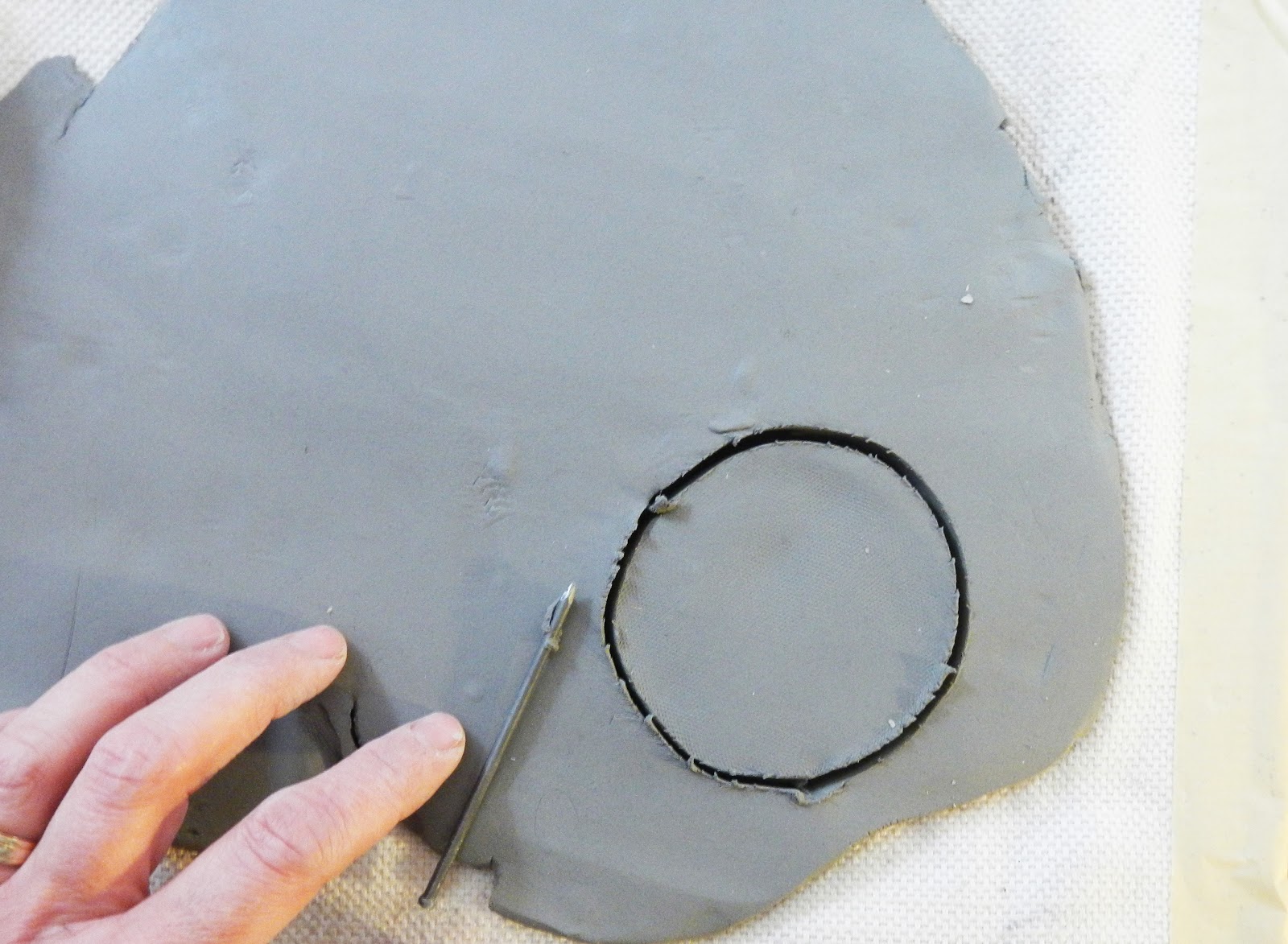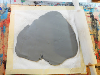 Roll your clay out to nice slab about 1/2 inch or 1 cm thick.