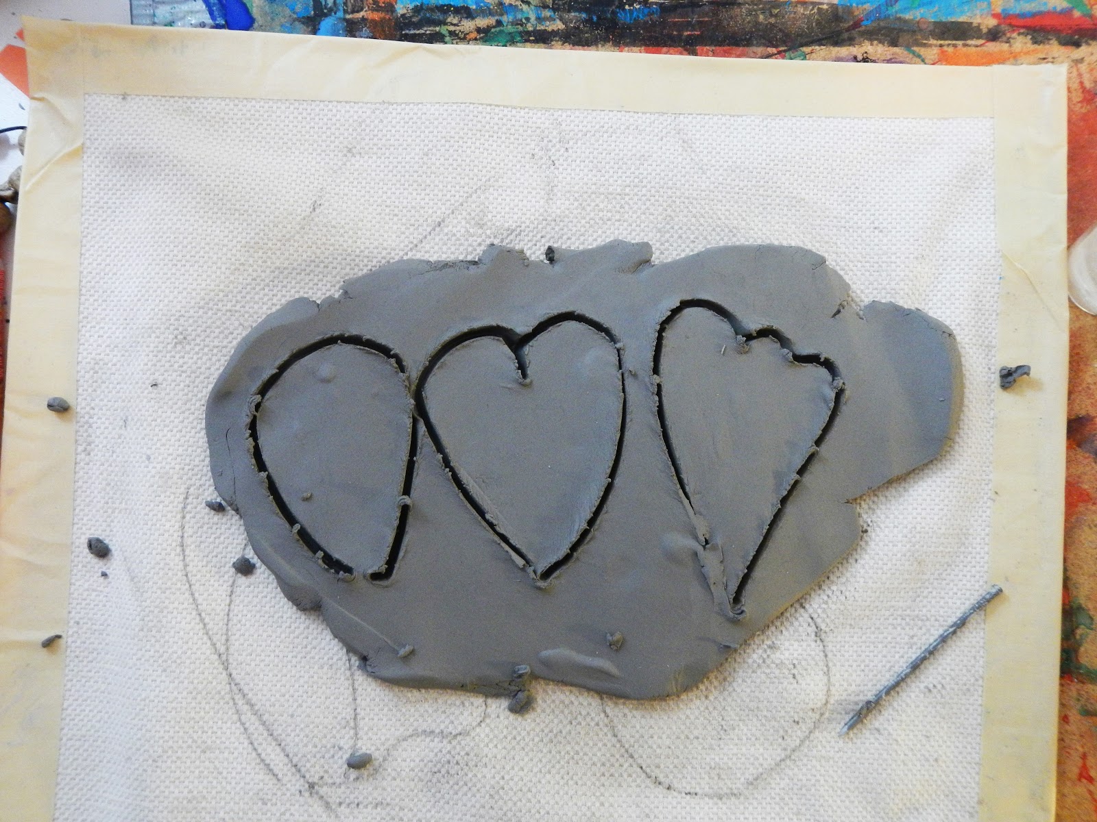 Gather your supplies. I have the kids work on small squares of canvas, like a placemat. We use them over and over. This stops the clay from sticking to their desks and makes clean-up a bit easier.