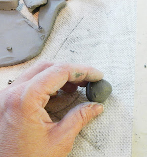 Roll a ball or some other shape for the center of your poppy. Attach with scratches and a little water.
