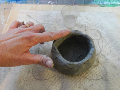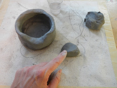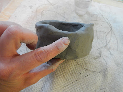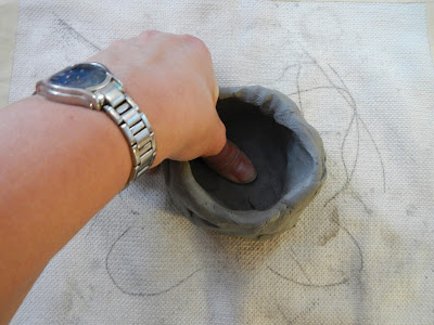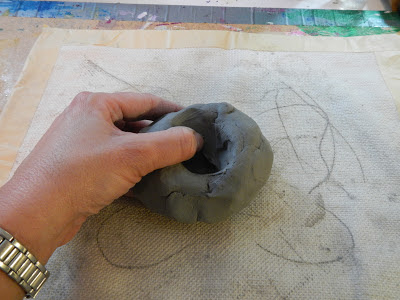 Using your thumbs push into the centre of the lump.  Start to form a pot.
