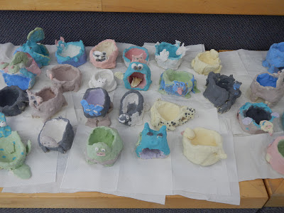 Each child chose their favourite animal. Some had their pots up on legs, some had the pot on it's side having a large mouth.  It was great to see all the different versions.