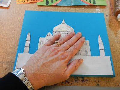 Cut to fit at bottom of both your canvas and cardboard Taj Mahal.