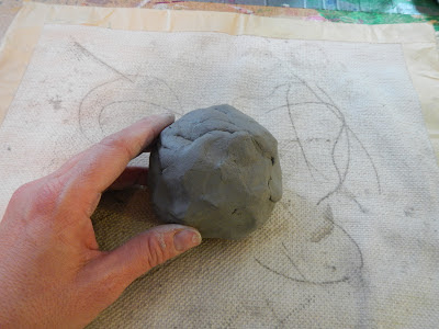Take a lump of clay about the size of an orange.  You will be working on your cloth placemat or paper towel.