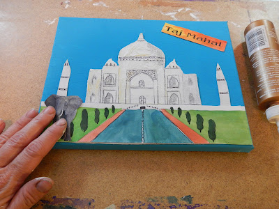 Now I know there are probably not too many elephants strolling around the grounds of the Taj Mahal but we put one in anyway to give it the same appeal as the Peru canvas.