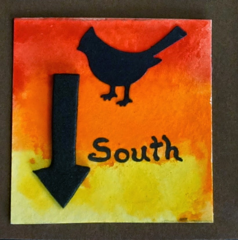 Add a black bird (silhouette) cut from black paper. I have a punch but you could draw it in pencil and then cut it out or just draw it on with black pencil crayon or marker.