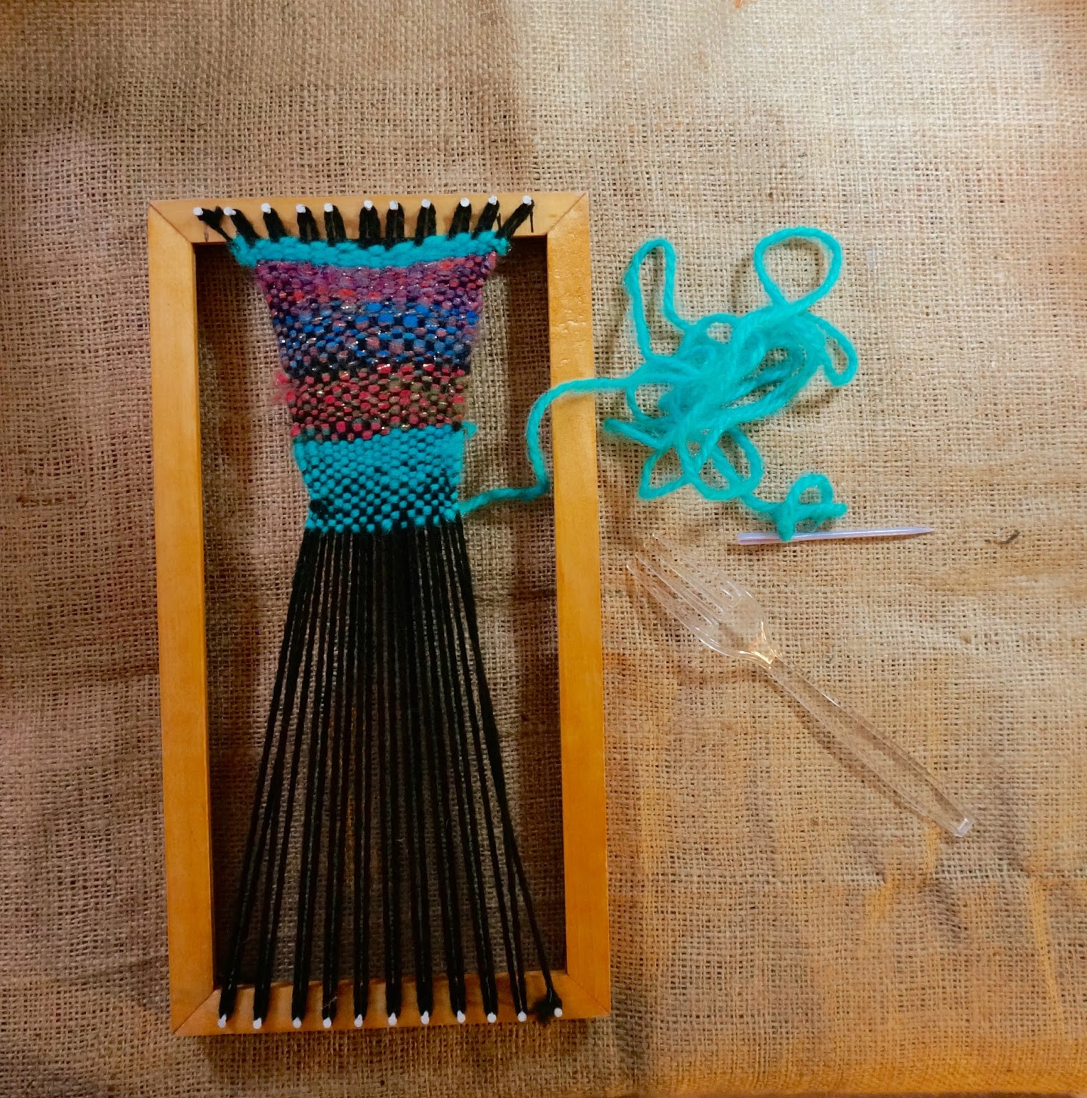 You can make a loom from an old picture frame or piece of plywood and some nails. This has been on my to-do list for quite a while. I need at least 50.