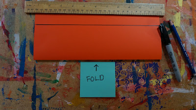 I gave each child a piece of orange cardstock for the loom.  They folded it in half, corners to corners.