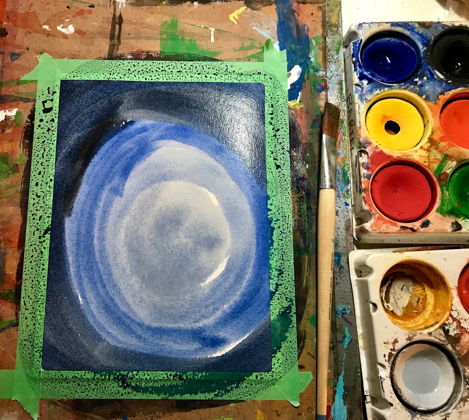 Finally I just add little white paint to the upper right corner. I'm just using my finger to rub it in.