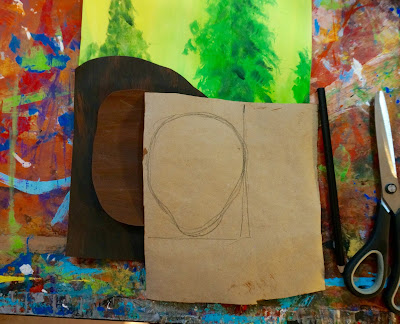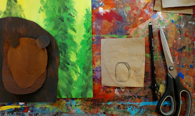 I took the paper I painted black and brown (the darkest one), turned it over to the unpainted side and sketched out my bear body shape.