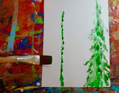 It's easier for me to show this technique on white paper. You take your brush (a big flat one) and using the edge make a line by dabbing your way up.