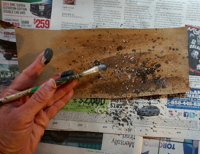 I took a scrap of paper and did a quick brown wash on it. (Take your brush that has the brown acrylic on it, give it a swish in water but don't clean all the paint out of it and then use that for your wash)