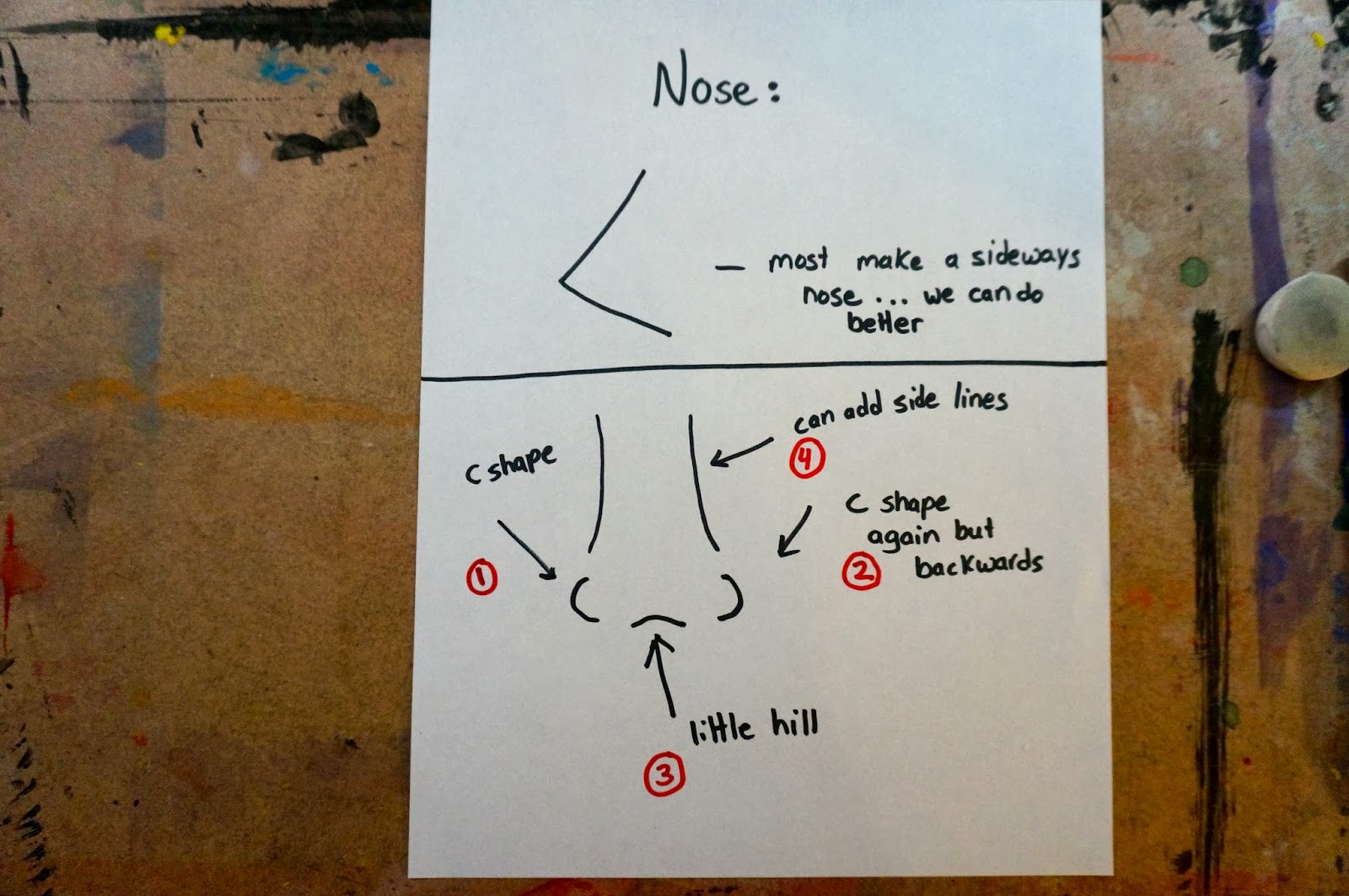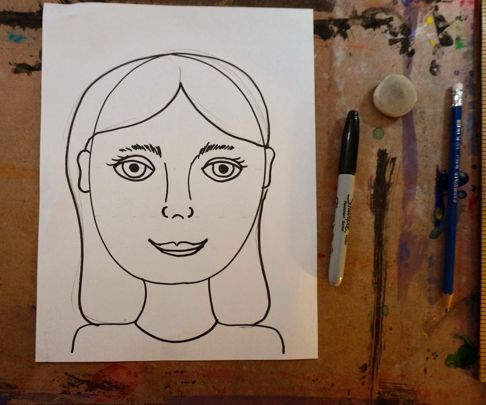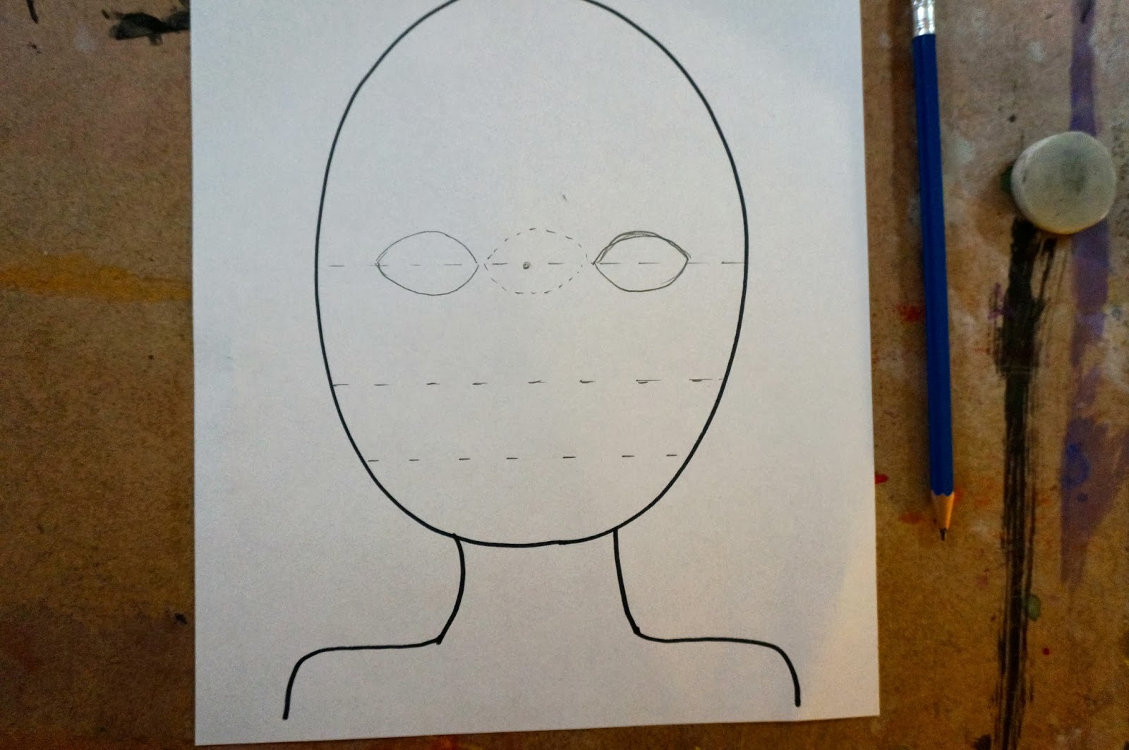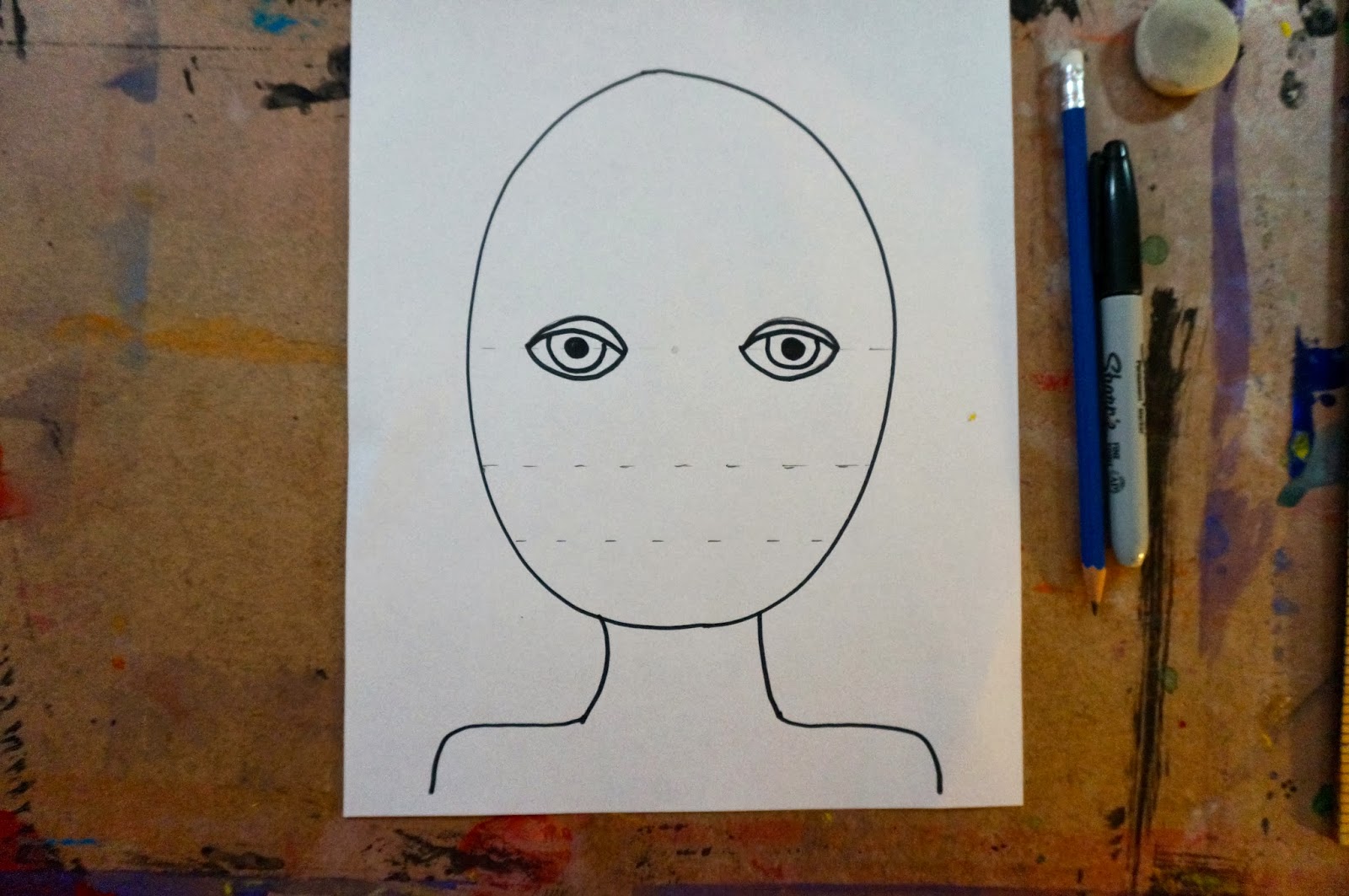 If you ask the kids what will be on this line they will say "the nose".  I ask them to look in the mirror again and then I get "oh, the eyes!".