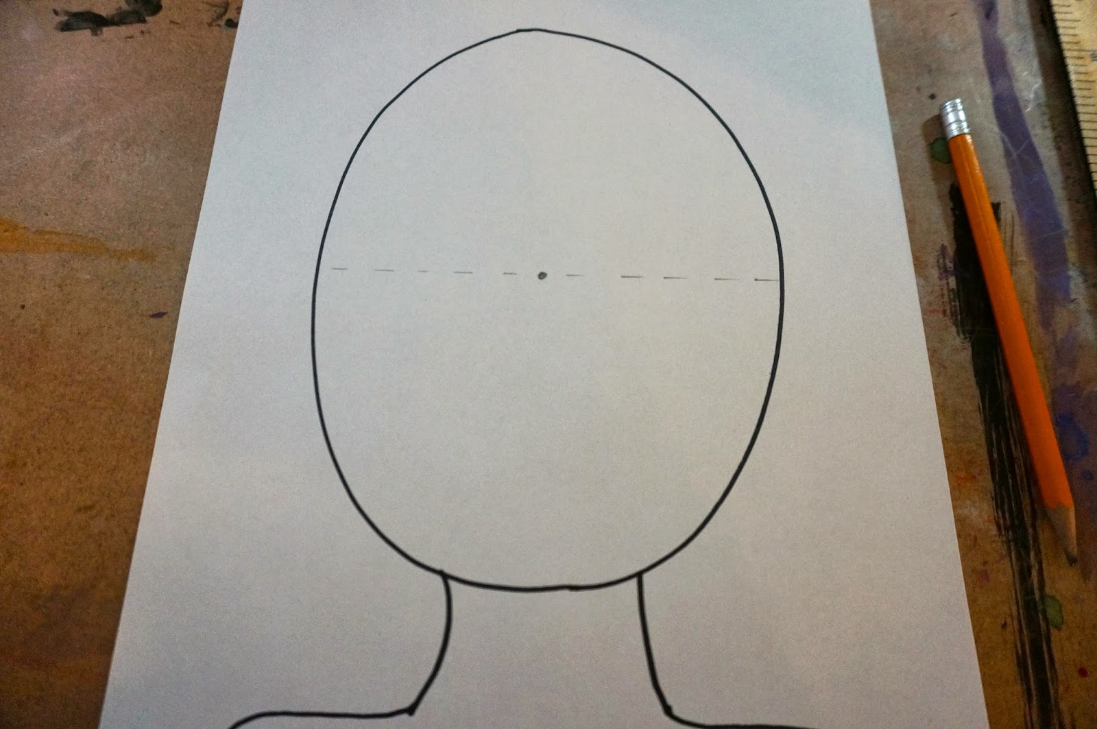 We then find the centre of the face and make a dot.