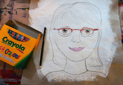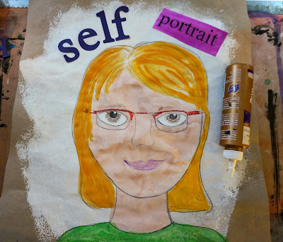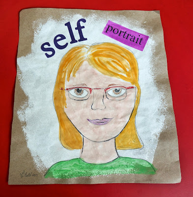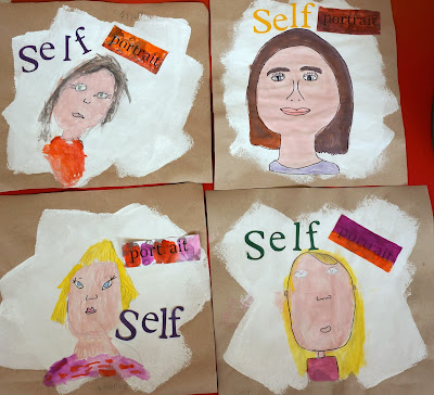 I cut the letters for 'self' using the cricut.  I printed the text for portrait.  For the kids it was printed on paper I created that had faces all over it.  We painted our 'portrait' paper.