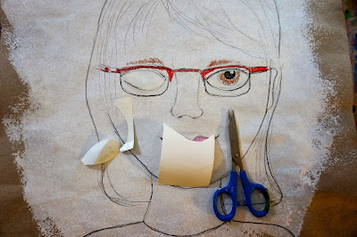 Because I had a lot of young Grade 1's, I cut eye shape out of contact paper and we covered the eyes.  If you place the paper on top of the eye you can see the pencil thru it and then you can trace out the shape.