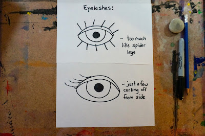 Eye spacing can be difficult so we talk about how it's like drawing 3 eyes except we erase the middle one.