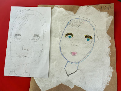 I have been working with Grade 1 and 2 on self portraits.