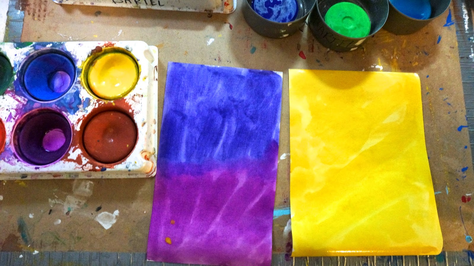 I then painted 1/2 of a paper purple and magenta. The other half I painted yellow.