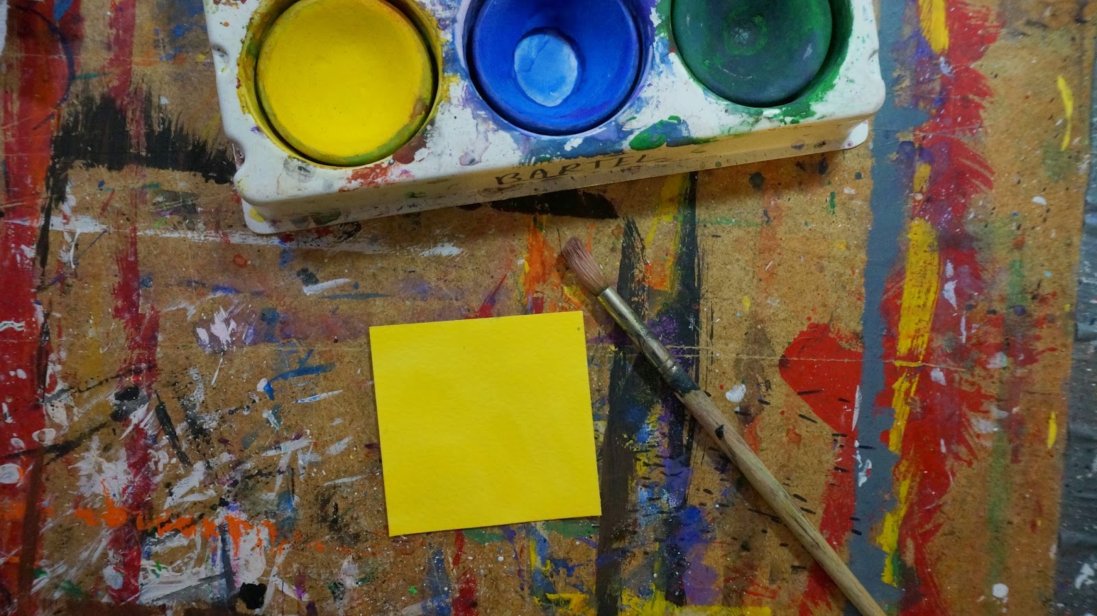 Paint one of the inches with yellow disk tempera.