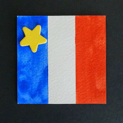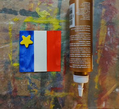 Glue on the yellow star to the blue stripe.