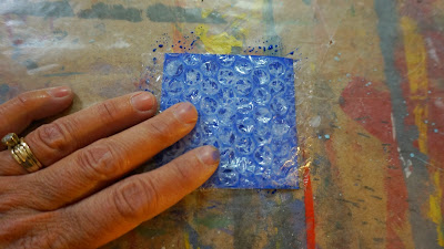While the paint is still wet lay a small piece of bubble wrap on top, bubble side down.