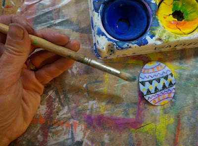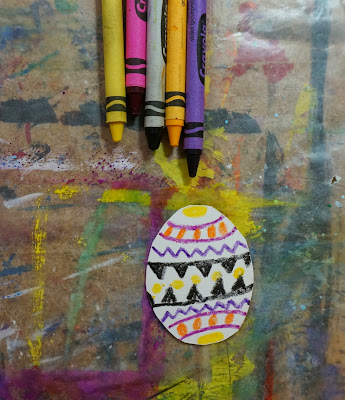 Using crayons draw on some designs leaving parts of the egg white.