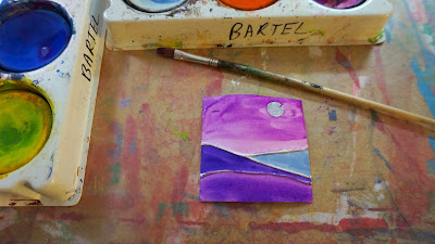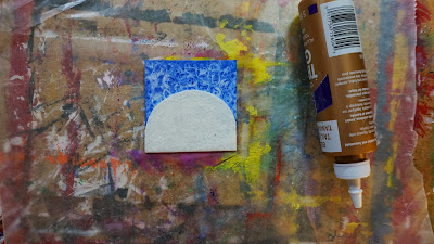 Paint an inchie with blue disk tempera.