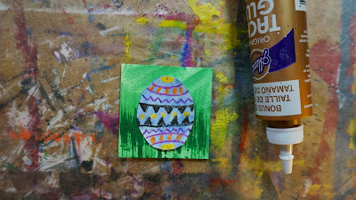 Glue the egg onto the green square.
