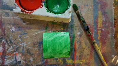 Paint one side of the tape blue and one side red with disk tempera.